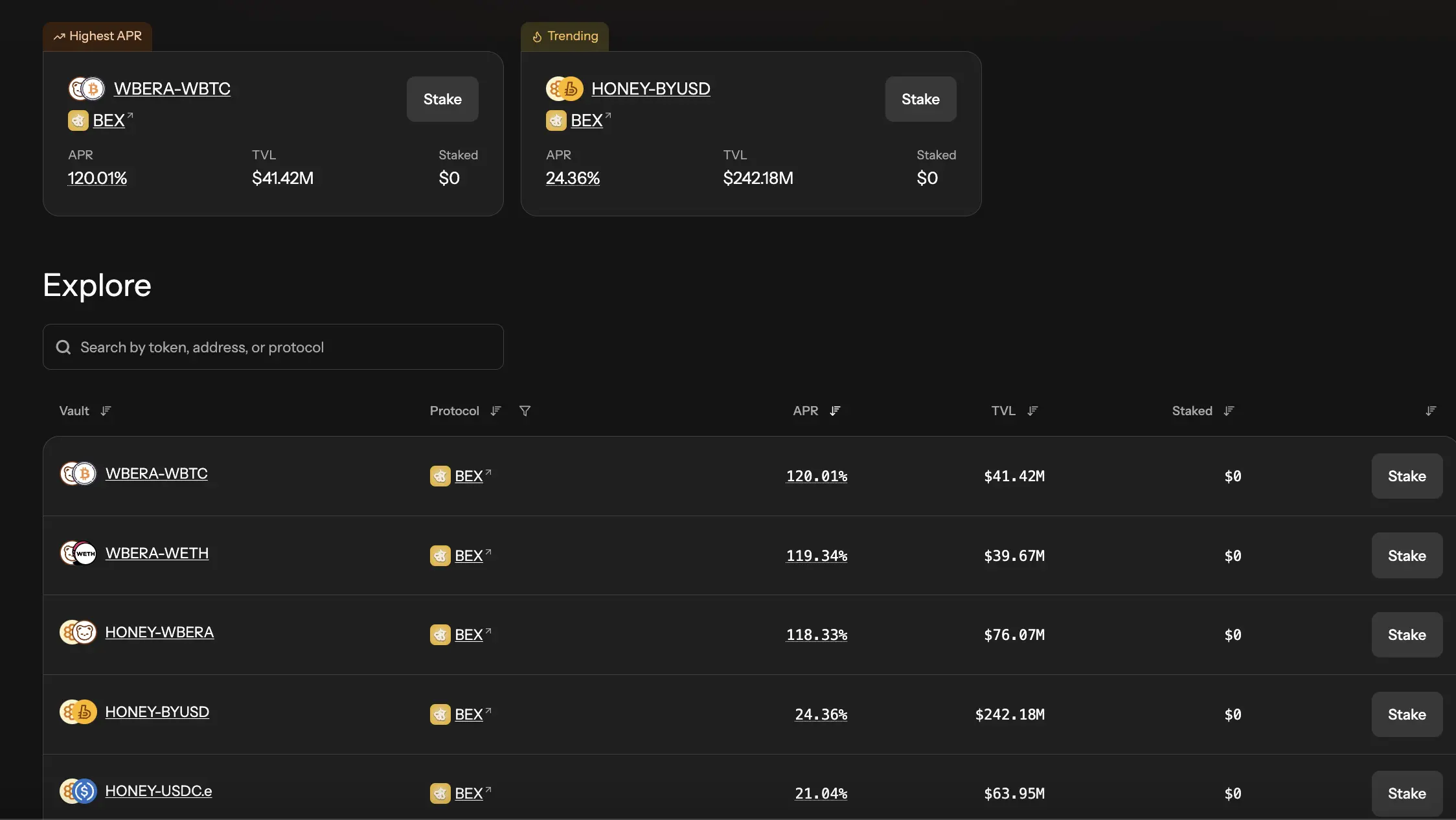 目前熊链的龙头流动性质押协议为 Infrared,其链上TVL 超14亿美元,最高的流动性池子的APY 为 120%。