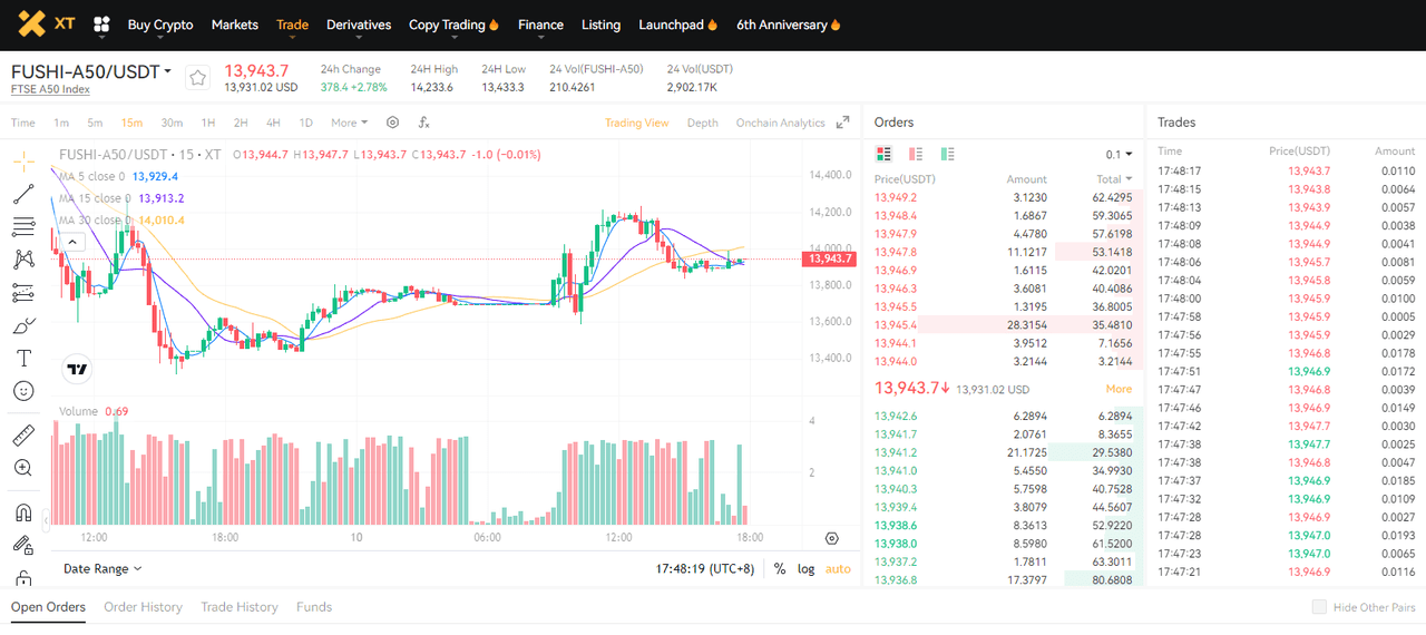 XT 在 10 月 7 日上午 9 点整推出了富时中国 A50 ETF (FUSHI-A50)现货交易(FUSHI-A50/USDT)服务,并且免除了交易手续费。这项交易服务旨在帮助用户抓住中国市场的增长机会和潜力。