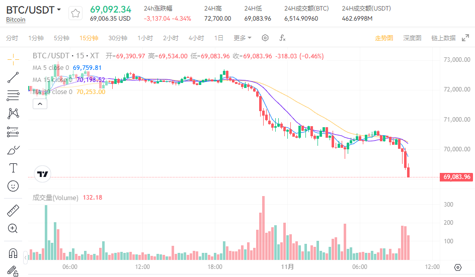 XT.COM 交易页面:BTC USDT
