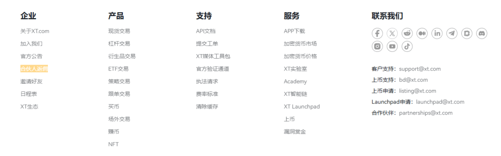 1. 登录您的XT帐户,并在XT.com底部找到[合伙人返佣]。
