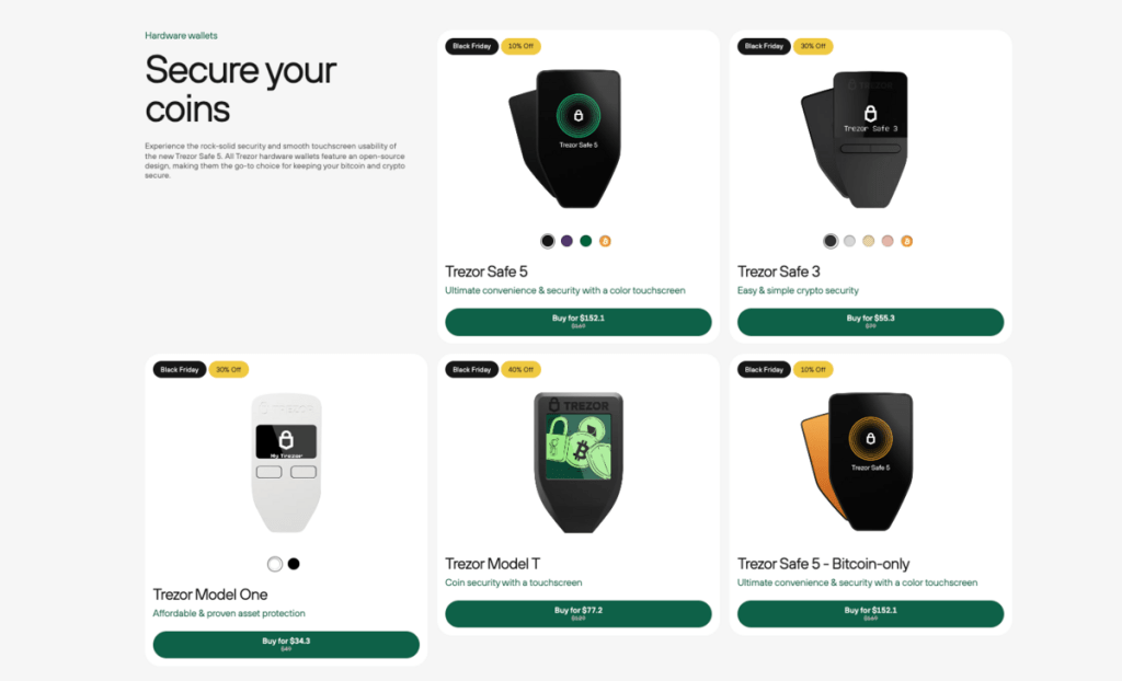 无论您是资深加密货币投资者,还是刚开始接触比特币等数字资产的新手,这次黑五都是升级资产安全的绝佳时机。Trezor 硬件钱包以其卓越的安全性能而广受信赖,不仅能有效防范黑客攻击,还能让您更加放心资产安全。这次优惠不仅是一场促销,更是一次为未来财务安全打下坚实基础的机会。限时折扣,机不可失,立即行动,用 Trezor 为您的数字资产打造牢不可破的安全屏障!