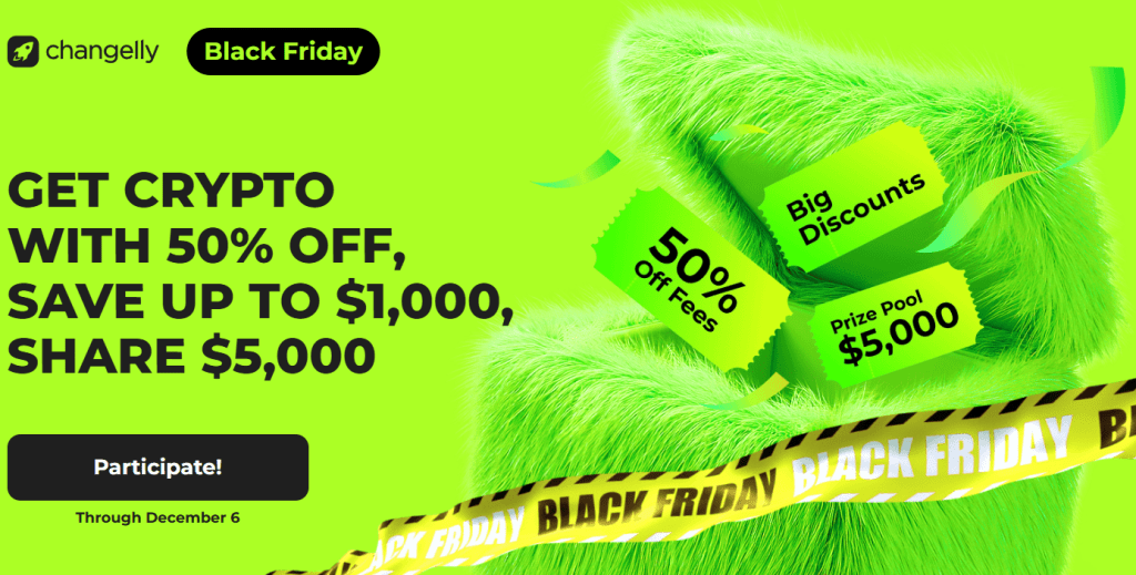 今年黑色星期五,Changelly 为加密货币交易平台用户准备了满满的福利。从 2024 年 11 月 15 日到 12 月 6 日,用户只需使用优惠码 BF2024,完成单笔超过 500 美元的交易,即可享受手续费折扣,可节省高达 1,000 美元。此外,活动还特别设置了 5,000 美元奖池,将由五位幸运用户平分,让每一次参与都充满期待与惊喜。