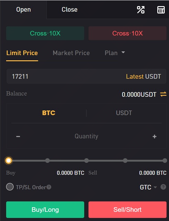 开仓时,用户可选择以市价(Buy-Market)或限价(Buy-Limit)进行买入操作。