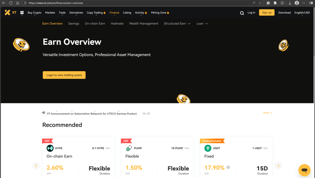 XT.COM平台多元化投资选项与专业资管服务概览