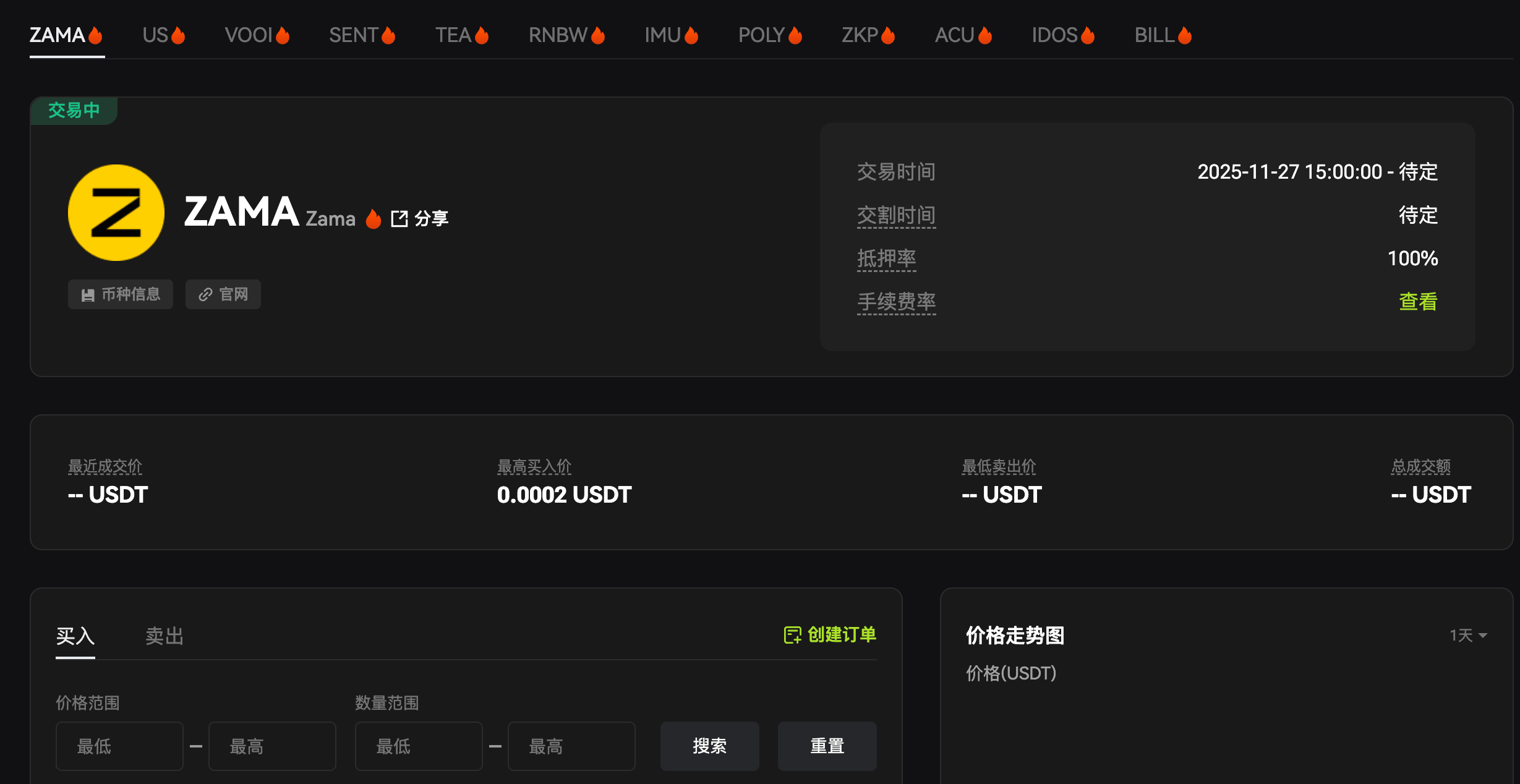 该代币目前已上线 XT 交易所的盘前OTC ZAMA区域,为用户在代币正式上市前提供提前交易的机会。