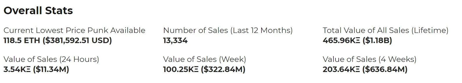 此后,NFT艺术基金VulcanDAO、实体画廊Start Art Gallery、Mask Network等在一周时间内相继宣布购入CryptoPunks。在这样的销售潮下,CryptoPunks过去的总销售额达到了11.8亿美元,单周销售额达到了3.23亿美元,地板价达到了惊人的118.5枚ETH(约合38.55万美元)。CryptoSlam数据显示,过去30日的总销售额达到了6.73亿美元,涨幅达到了409%。