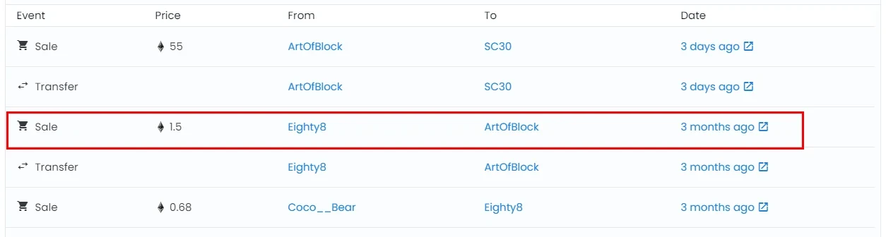 根据Opensea数据显示,在库里买入前,BAYC 7990上一次的交易记录是在3个月前,以1.5枚ETH的价格出售,3个月的时间,该只猿猴的价格上涨了近36倍。