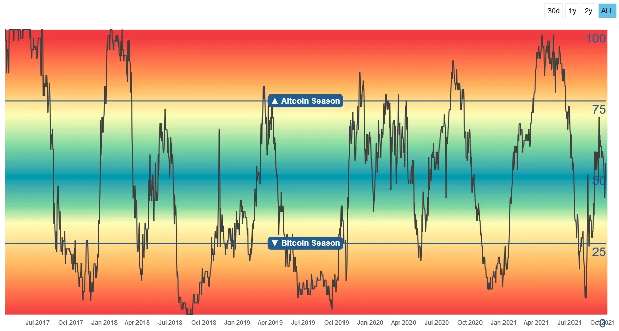 那么,当下(2021年10月份)是山寨币季节吗?