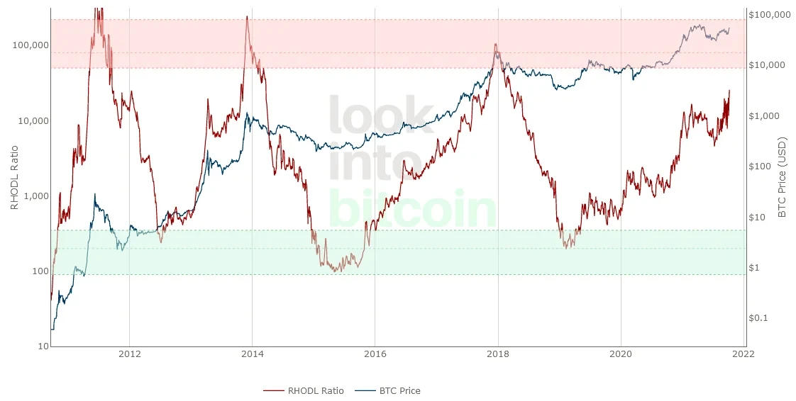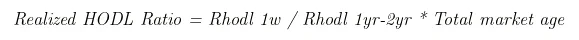 RHODL Ratio是推特博主Philip Swift (@positivecrypto)于2020年6月份创建,该指标公式如下: