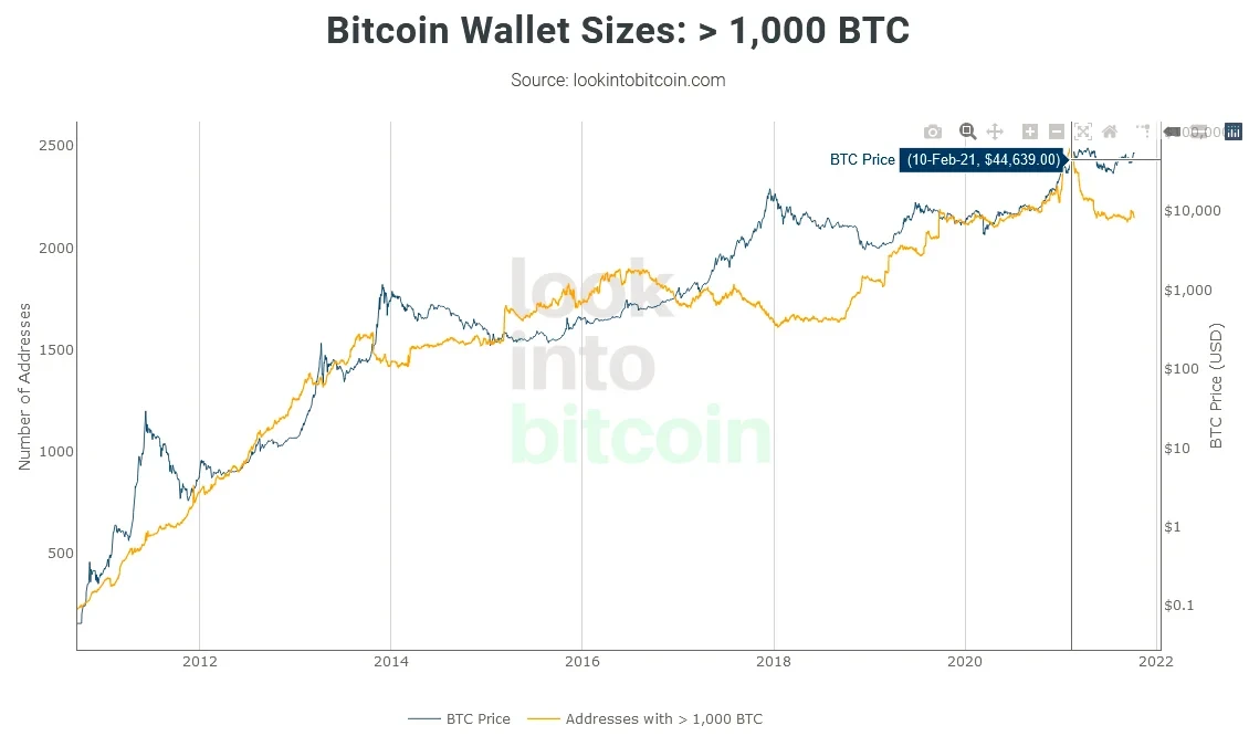 8、巨鲸Bitcoin Wallet Sizes: > 1,000 BTC