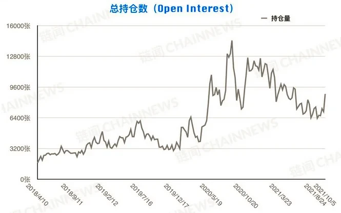 目前总持仓量处于上升阶段,说明市场热度正在回升。