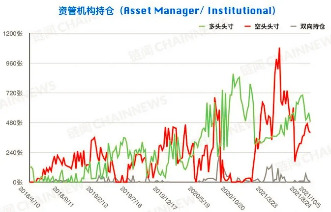 另外一个值得关注的指标为资管机构(Asset Manager/Institutional)持仓数据,最新报告如下,说明多头头寸进行了较为明显的减持行为,说明资管机构在行情大涨的环境中实际上同样给出了偏空的判断。