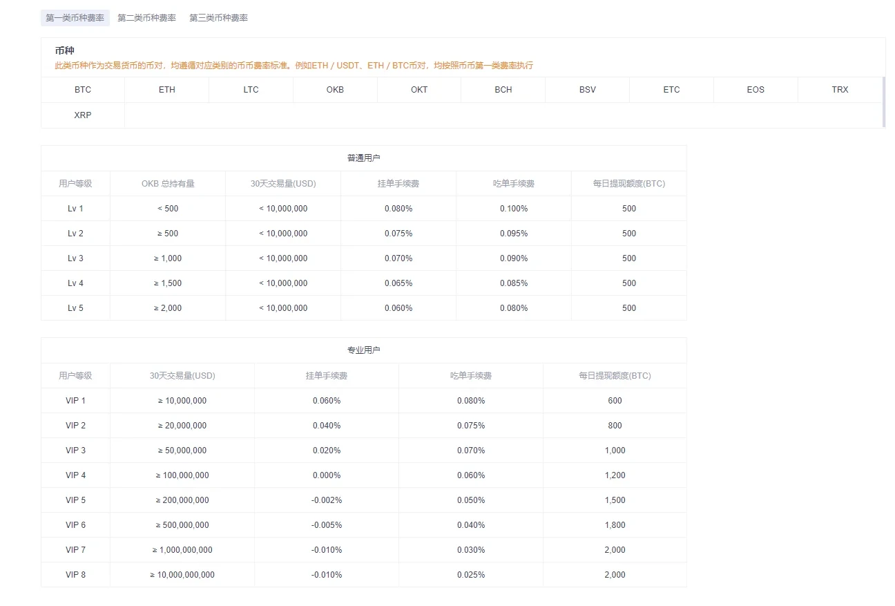 (3)币币交易区和币币杠杆交易区,手续费率都是参照下表的费率标准。