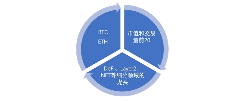 最后是自己看好的数字资产,比如你非常看好DeFi、layer2、web3、或NFT板块的几个币种,也可以加入备选池,但是这部分数字资产最好选各个分板块的龙头项目,而且资金占比不要太大,比如不超过25%,因为这部分数字资产的波动会更加剧烈,占比小就不会因单独的币种波动剧烈,影响整个定投组合的收益。