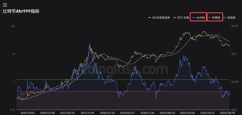 比如最近ahr999指标,自7月以来跌入抄底线0.45下方,显示此时定投BTC是比较好的时间段。