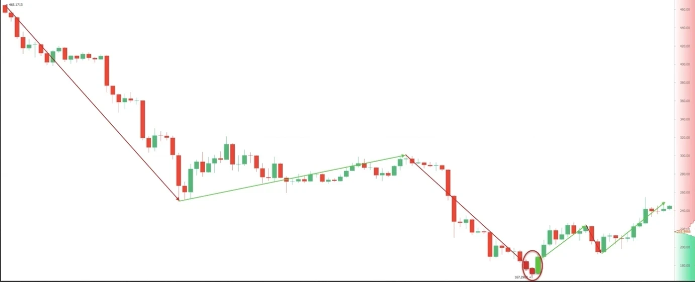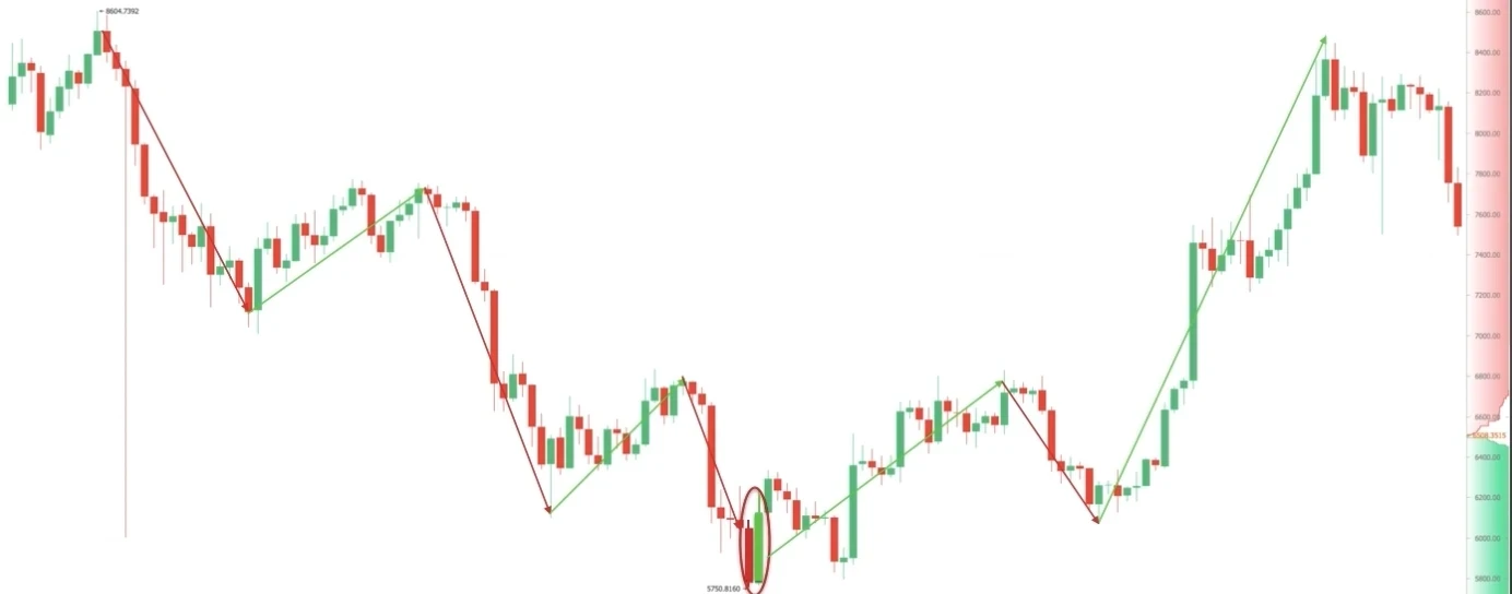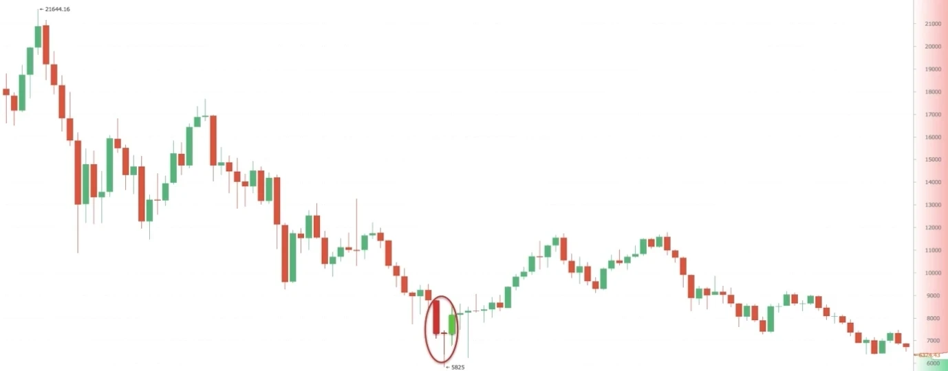 图一,币价大跌后出现看涨吞没组合,后市止跌并出现大幅反弹;