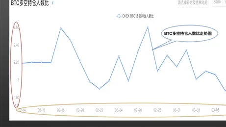 截图来自欧易 BTC多空持仓人数比示意图,横轴代表日期,纵轴代表多空持仓人数比,蓝色曲线为不同时间下的每天多空持仓人数比走势图,是指一段时间内持有BTC合约多仓总人数与空仓总人数的比值情况,多头代表看涨的人,空头代表看跌的人,多头多于空头,说明看涨的人数比较多;空头多于多头,说明看跌的人数比较多。