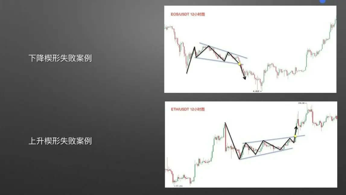 当然,并不是所有的楔形都会成功走出预期走势,它们也会有失败的时候。