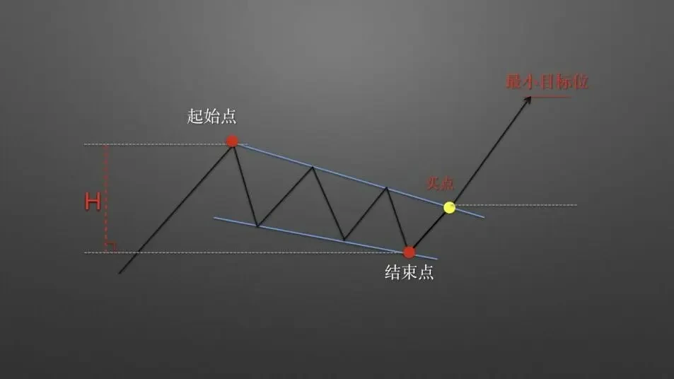 通过以上的学习我们知道了如何通过楔形去找到买点和卖点。那么楔形的最小目标位又该如何确立呢?