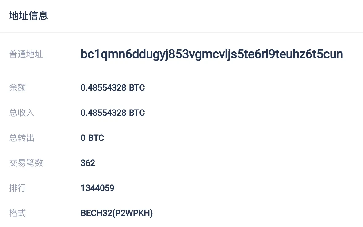 截止到1月21日,该地址已筹集超过0.48枚比特币,交易笔数为362笔,价值约12万人民币。如下图: