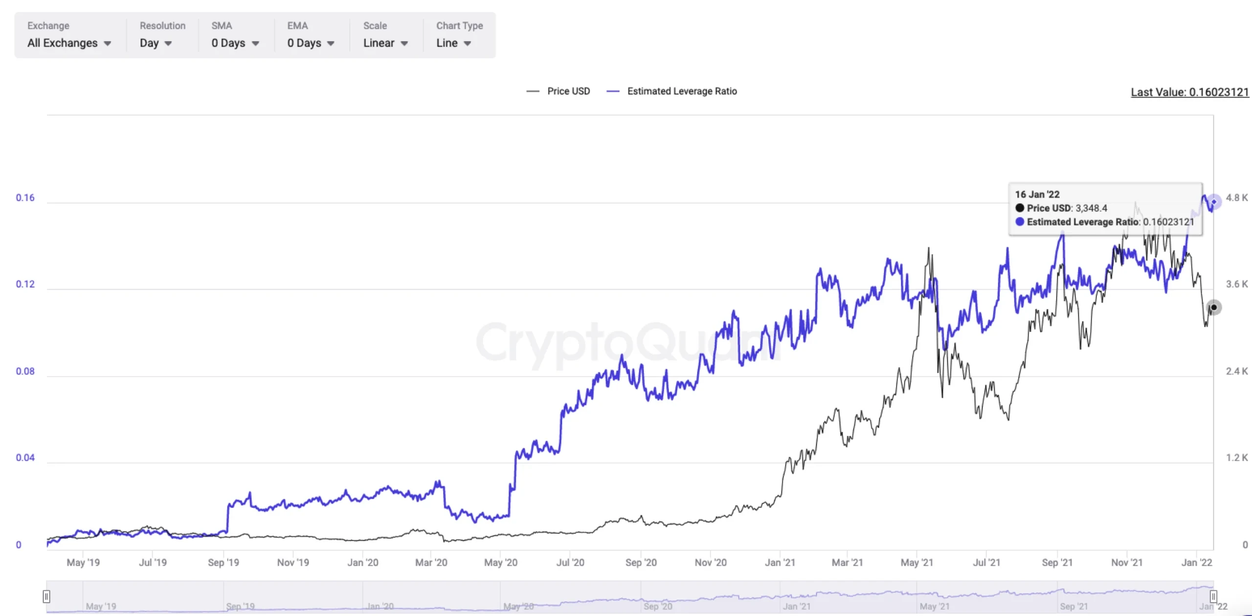 此外,以太坊的预估杠杆率也来到历史新高0.16。