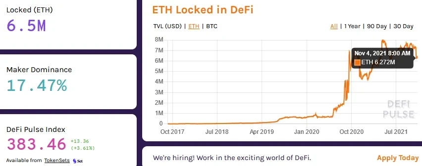 当然,通缩只是以太坊金融价值的一个方面,DeFi的繁荣发展才是以太坊金融价值的坚强后盾,这是因为以太坊既作为有息资产存在,又因为去中心化金融网络为以太坊网络赋能。
