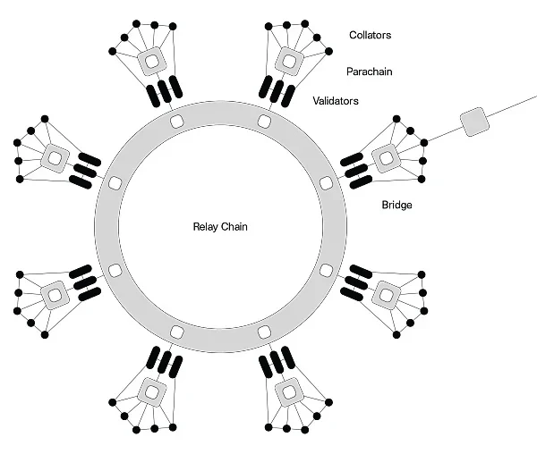 波卡是一条可拓展的异构多链区块链,为了实现跨链愿景,它设计了“中继链+平行链”的双层结构。通过这个结构,波卡能将数据传递到所有区块链,实现各个链之间资产与数据的流通。波卡的平行链就相当于分片链,负责处理各项事务,再通过中继链进行互通。