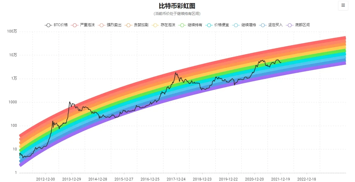 总结:以上10个数据指标中大部分都偏利好,而且几个指示牛市顶部的指标,如:RHODL比率、Pi指标、比特币彩虹图等,均未出现牛市见顶信号。从数据指标来说,牛市并未结束,现在市场处在连续下跌之后的修复阶段。