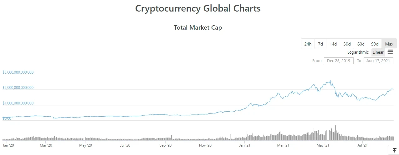 不过,与此同时,我们意外的发现随着比特币价格企稳回升,加密市场大盘也在短期内呈现出欣欣向荣的景象。比如从市场的总市值数据来看,时隔三个月再次回到2万亿美元之上,相比7月20日创下的1.29万亿的阶段性低点涨幅超过55%,而距离前高2.6万亿美元的市值规模也不过仅有23%的差距。所以当市场行情走到这里的时候,不禁会让人们再次产生这样的疑问:加密市场的牛市又回来了吗?