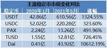 接下来回顾一下在2020年初至2021年5·19极端行情之前,稳定币市场流通市值有哪些变化。其实从上面的描述中,我们已经能够发现些许端倪,下面让我们用数据再来验证一下。