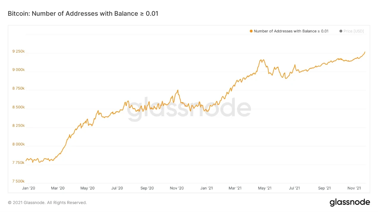 持仓超过0.01枚BTC的地址数变化,数据来源glassnode