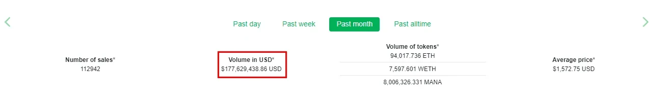 根据NonFungible数据统计,截至3月4日,NFT行业的历史交易额达到了近3.69亿美元,平均单笔NFT的交易价格为68.85美元。从历史交易额切成过去一个月的数据,我们发现,过去一个月的交易额居然达到了1.78亿美元,在总交易额中占比高达48.24%。另外,过去的一个月里, NFT平均单笔成交价在1572.75美元,较68.85美元上涨了2184.31%,近期NFT市场的火热程度可见一斑。