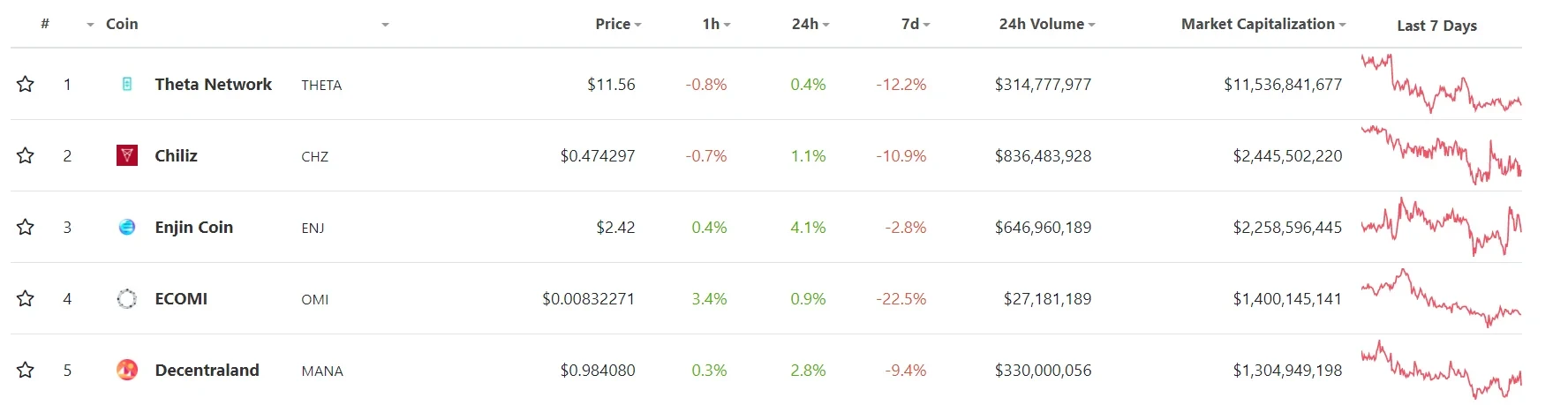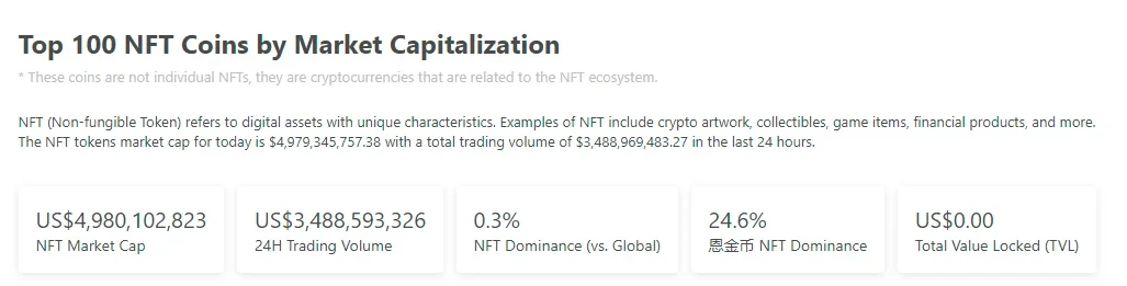 CoinGecko数据显示,目前排名前5的NFT相关代币,占据了近70%的NFT总市值,可见当前资金主要集中在头部项目。