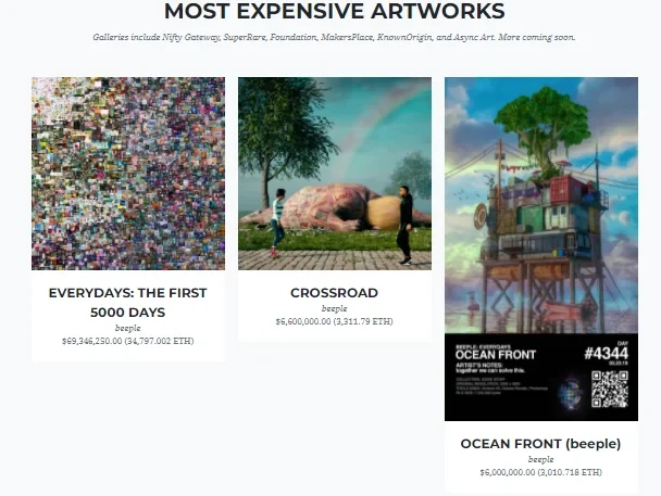 提及NFT,很多人首先想到的便是拍出天价的艺术品,点开Crypto Art的官网,首页便能一览这些名贵艺术品的风采。