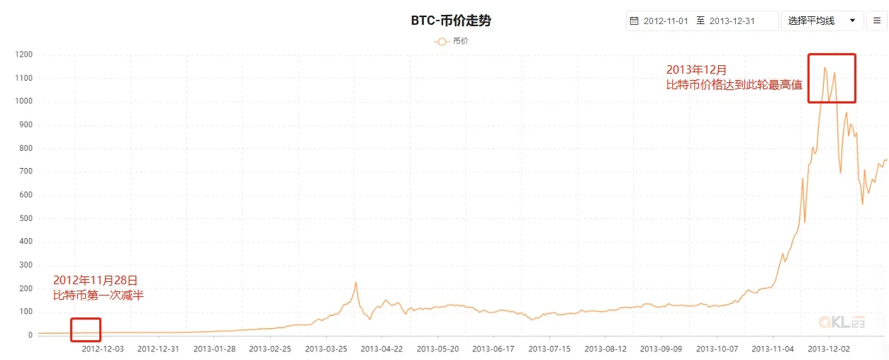 从比特币前两次的减半行情来看,比特币每次牛市的最后阶段都有一个加速上涨的行情,在K线图上形成一个“尖顶”(如下面两张图所示)。这符合牛市第三阶段的特征,泡沫疯狂期,也符合牛市结束的内在逻辑:市场加速上冲,新资金难以支撑,耗尽所有能量之后崩溃,牛市结束。