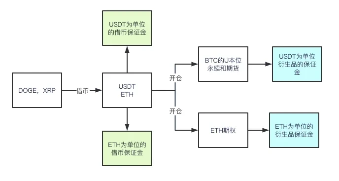 例如用户持仓为以DOGE和XRP为抵押,持有BTC的U本位永续和期权,以及ETH的期权;