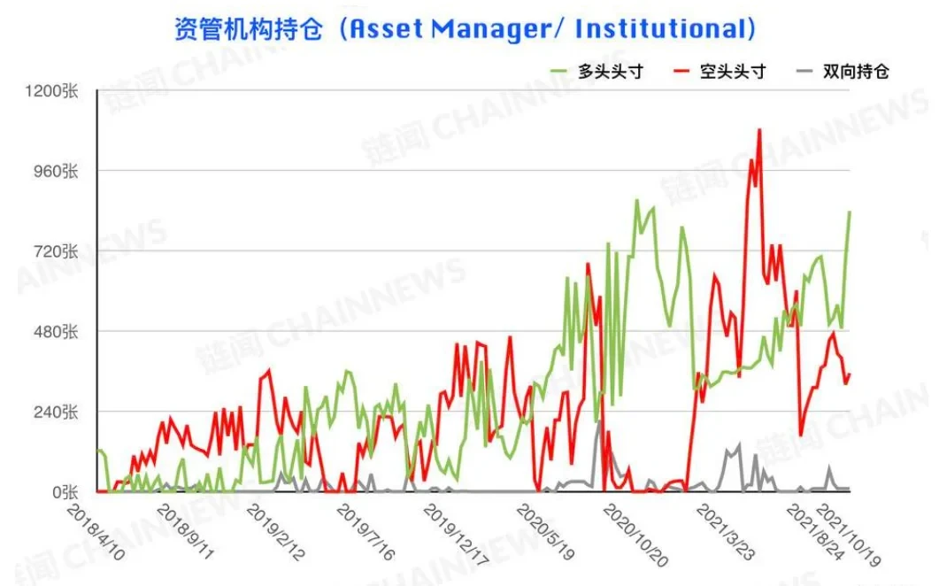 另外一个值得关注的指标为资管机构(Asset Manager/Institutional)持仓数据,最新报告如下:资管机构在最新统计周期内进行了多空双向同步增持,其中多头头寸出现了相当大幅度的增长,相比下空头头寸的增幅比较有限,这类账户的多单持仓占比也在时隔 10 周后首度回归 70% 以上,资管机构对于短期内的这波上涨仍然保持顺势的追进态度。