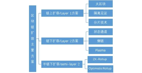链下扩容方案,也叫Layer2方案,主要通过第二层协议在链下执行大部分交易,以降低成本提高效率。目前主流的Layer2方案包括状态通道、侧链、Plasma。