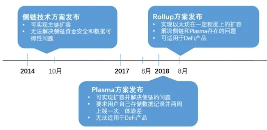 为了解决侧链存在的问题,并实现以太坊扩容,以太坊创始人Vitalik在2017年推出了名为“Plasma”的Layer 2扩容方案。Plasma的特别之处在于设计了一套欺诈证明机制:Plasma将特定的底层数据发送给用户自己进行保管,解决了数据可得性问题;此外,Plasma有一个“退出期”设计,即便黑客取得侧链的控制权并尝试取款时,任何用户都可以在“退出期”内提交证据来进行挑战,如果挑战成功,任何人都不能提取这笔资产,并且运营方也将被罚款,由此保证了数据的真实、有效和准确性,解决了资金安全性问题,。