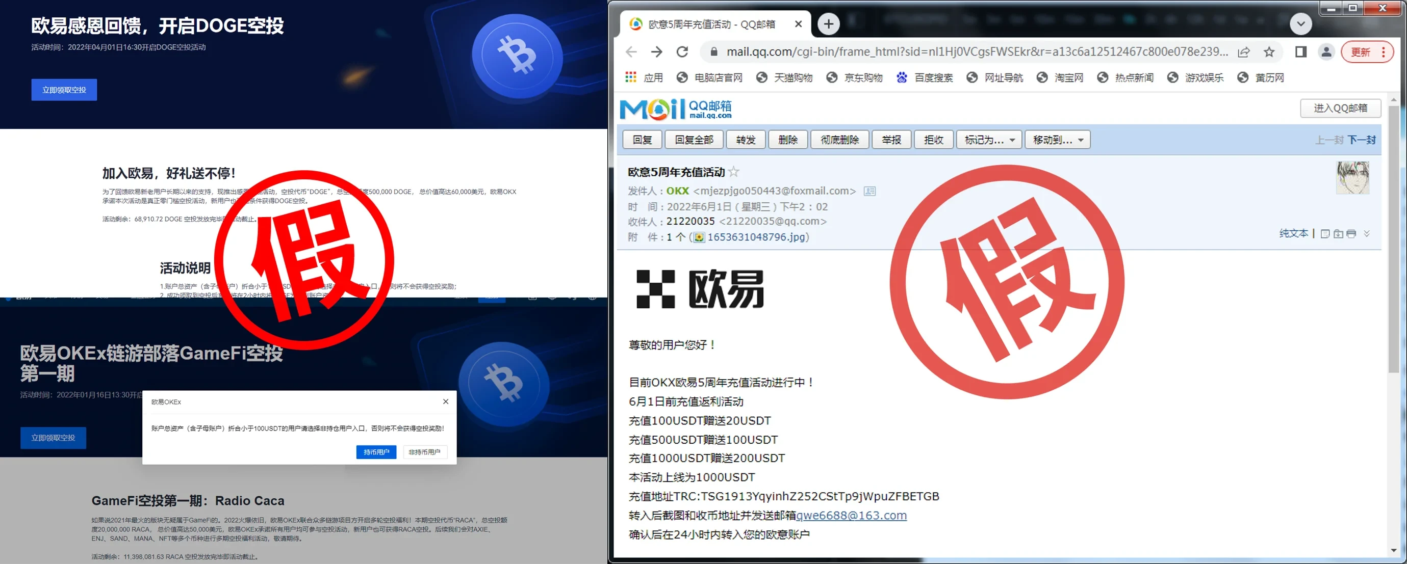 近期有不法分子在推特、Telegram、微信、IM等渠道发布投资诱导诈骗信息,骗取用户资产,请广大用户提高警惕,谨防被骗。