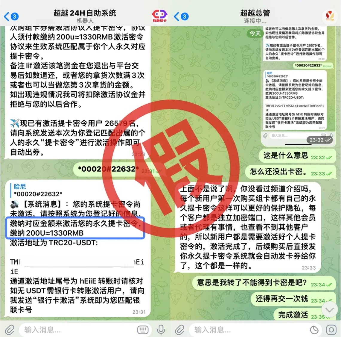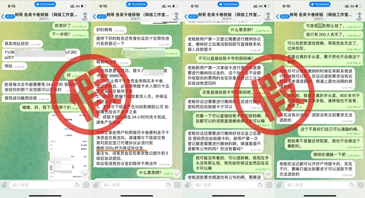 当然,就算付了款,用户也不会如愿拿到充值卡和收益的。骗子可能会直接卷款失联,或者发来假卡,然后卷款失联。