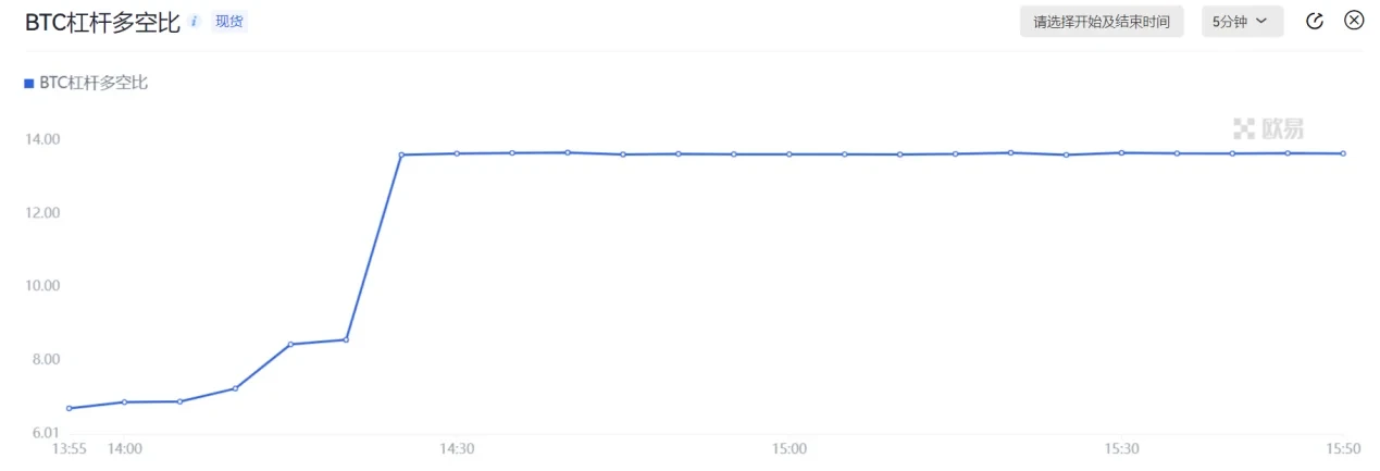 1、杠杆多空比:该指标展示某一时刻,BTC/USDT杠杆借入计价货币(USDT)与借入标的货币(BTC)的累计数额比值。通常该数值越低,代表借入标的货币(BTC)的数额越大,做空BTC的数额越多。该数值越高,通常代表做多的数额越多。这一数据和指标可以反映市场投资者的情绪变化。
