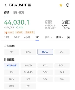 在加密市场日常交易中,我们经常会看到一些行情分析师根据一些技术指标来判断未来行情的变化,从而辅助自己做出决定。为了方便用户更好地进行行情研判,欧易的行情图上也设置MACD、RSI、KDJ、BOLL等众多指标(如下图)。
