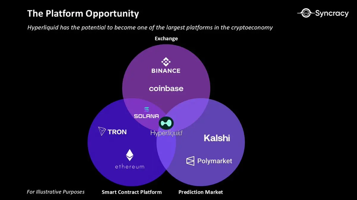 在实现这个未来之前还有很多步骤。但核心理念是,当资产共享一个流动的账本时,金融活动就会出现寒武纪爆发。随之而来,我们相信,如果永续DEX成功抓住这个平台机遇,它们就能产生达到Solana或以太坊级别的成果,并在长远来看突破万亿美元大关。