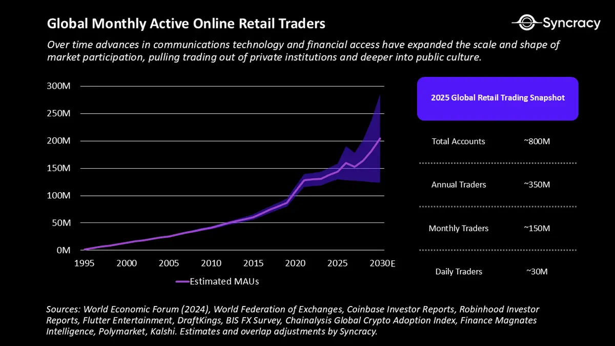 尽管自2025年历史性的10/10清算事件以来,加密货币相对于股票和大宗商品的表现不佳加速了这一群体的采用,但最重要的问题是:接下来的增长动力将来自哪里?除了加密原生用户群之外,这项创新还能输出给谁? 我们认为答案在于金融界最明确的长期增长趋势之一——全球散户投机者的崛起。