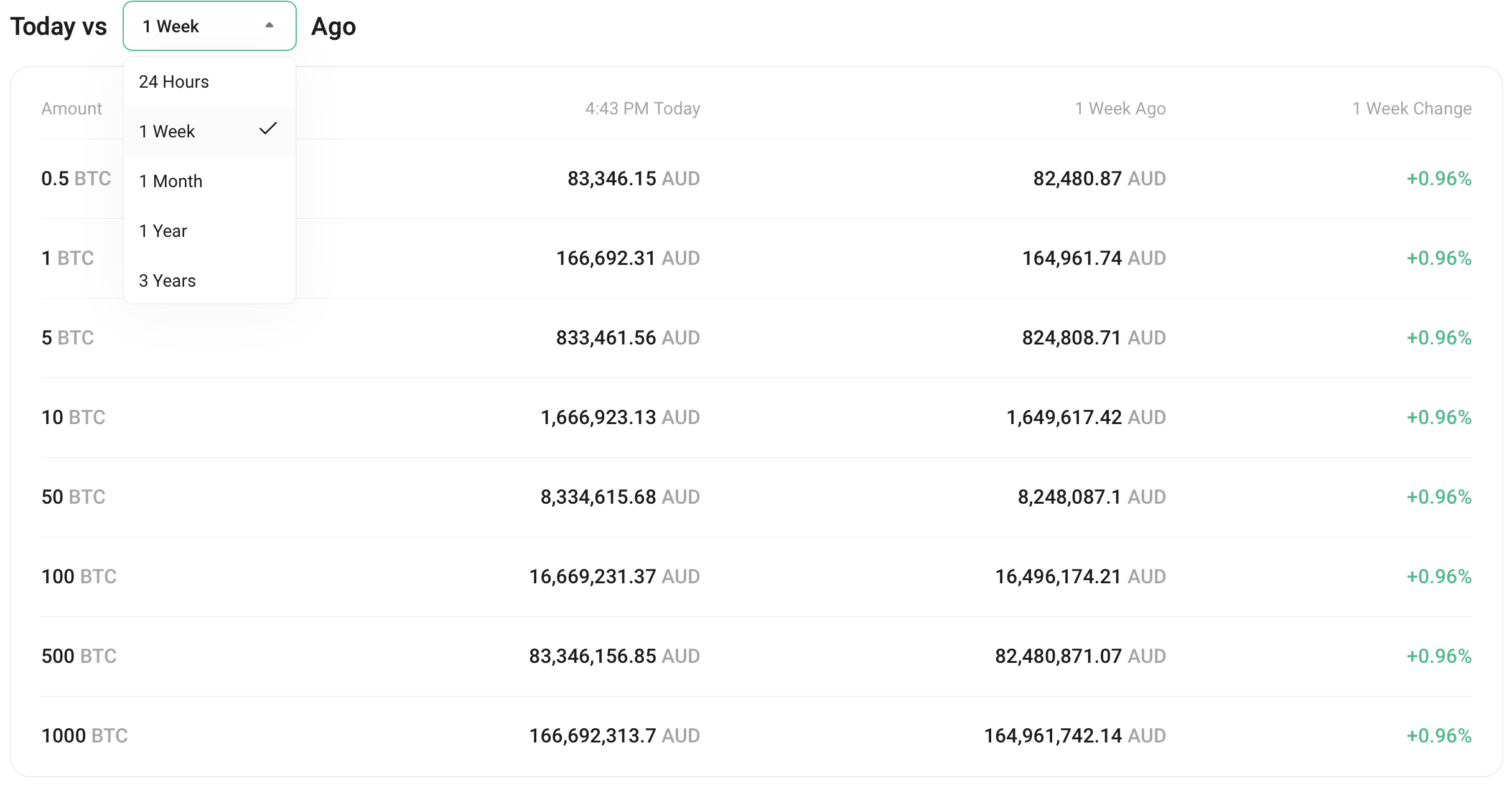 BTC/AUD 價格歷史(過去 7 天)