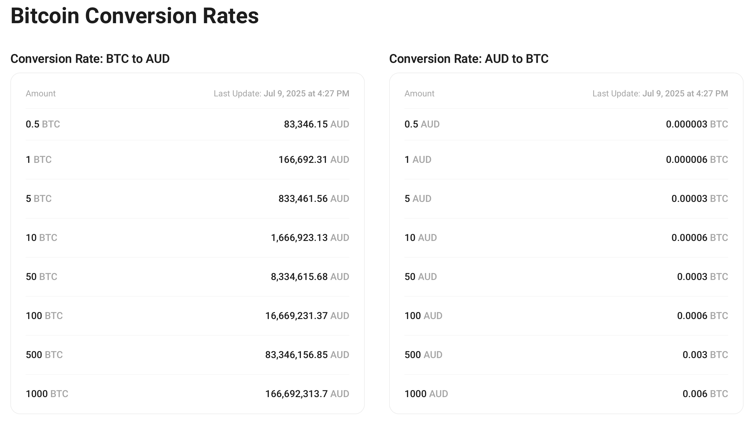 進入「購買加密貨幣」部分,選擇「AUD」,輸入您希望購買的比特幣數量,然後確認詳細信息並執行交易。您的比特幣幾乎會立即以實時 BTC/AUD 價格存入您的帳戶。這確實是使用 AUD 快速且安全地購買 BTC 的最快方法。