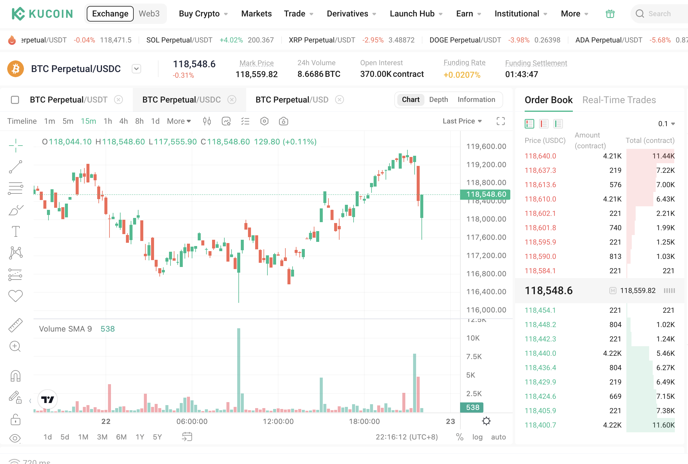 多樣化交易對:KuCoin 提供大量其他期貨交易對。這包括許多受歡迎加密貨幣(例如 Bitcoin 之外的 Ethereum (ETH)、Solana (SOL) 等)與 USDT 的永續合約。這使您能夠多樣化您的策略,並在積累經驗的同時探索不同的市場。針對 Bitcoin 本身,您會找到各種交易對,例如BTC/USDT甚至BTC/USD,根據您偏好的抵押品提供選擇。