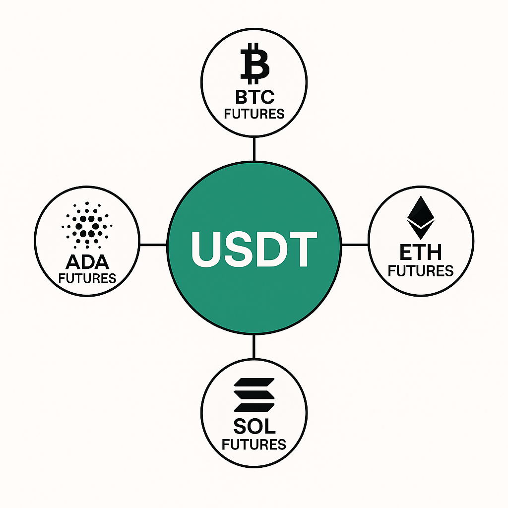 多功能性:您可以使用 USDT 保證金交易不同的加密貨幣期貨(例如以太坊、Solana 或 BNB),簡化管理多個倉位的過程。