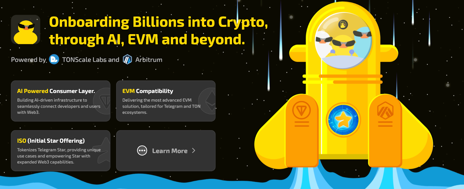 Telegram AI Chain 原名為 DuckChain,是一個非以太坊的第二層 Orbit 鏈。它通過 Arbitrum 可擴展性增強了 TON 區塊鏈。該平台旨在成為最大的 AI 鏈以及 Telegram 生態系統中的頂級 EVM 鏈。擁有超過十億用戶的 Telegram,使得人們更容易進入 Web3。它結合了 Telegram 的友好界面和 AI 工具,簡化了區塊鏈的採用。